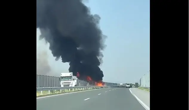 Камион гори на АМ „Тракия“, съобщават очевидци. Инцидентът е станал на отбивката да Ямбол и Сливен в посока Бургас.