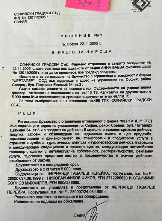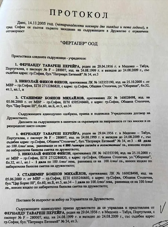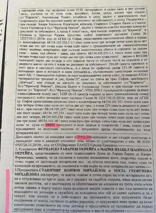 „ФЕРТАПЕР“ ООД и Мария Перейра за 88 800 лева. (Виж прил.3).