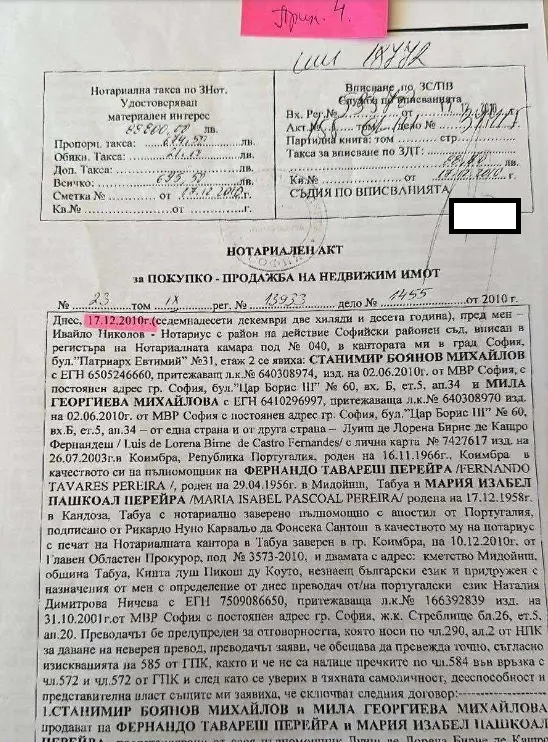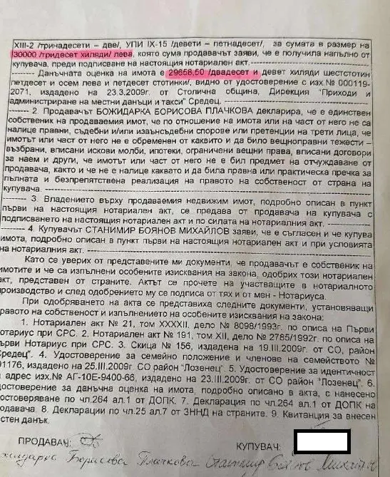 Той е подал декларация с невярно съдържание при имотна сделка. От документите, които прилагаме, се вижда, че на 17.04.2009 г. Станимир Михайлов купува апартамент 50 кв. м. на бул. „Фритьоф Нансен“ за 30000 лева при данъчна оценка 29658.50 лв. (Виж прил.1)