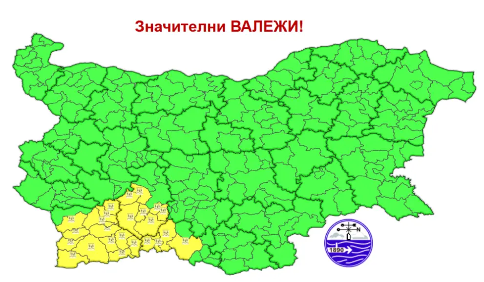 Днес е обявен жълт код за обилни валежи в областите Смолян, Пазарджик и Благоевград. Това съобщиха от Националният институт по метеорология и хидрология (НИМХ).