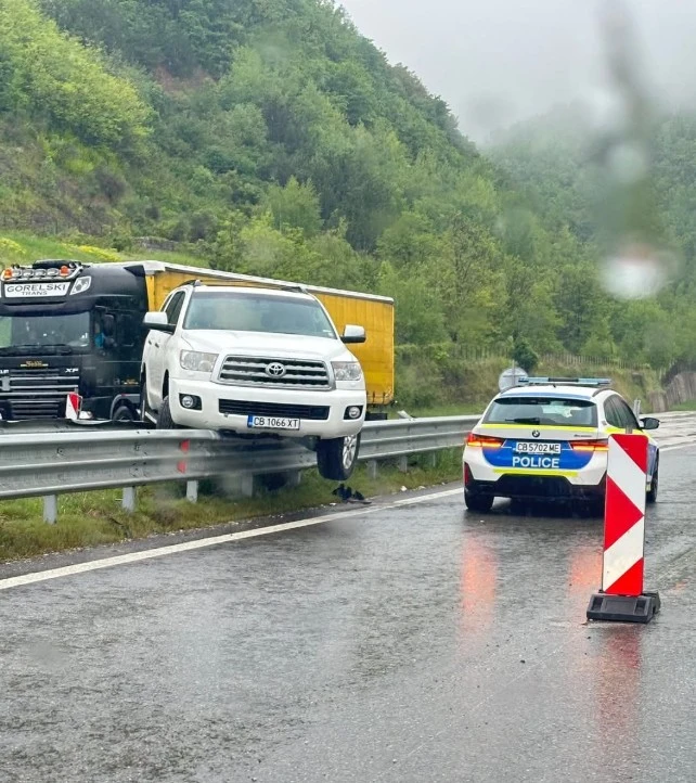 Отново на магистрала „Хемус“ преди тунел „Топли дол“ пък бял джип е катастрофирал и е на мантинелата.