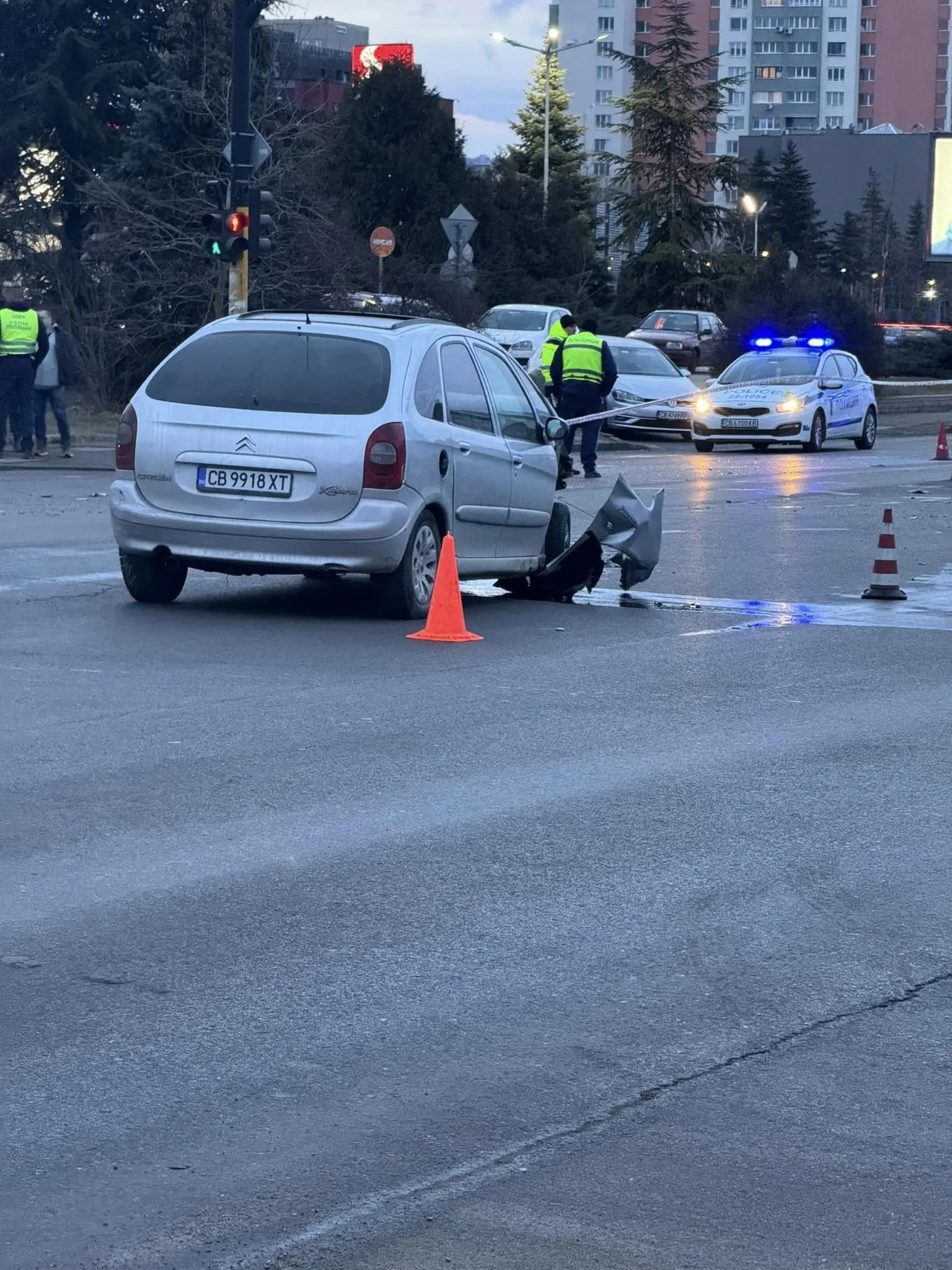 Според данните на МВР инцидентът е станал около 4 часа сутринта. 55-годишен шофьор удря със своя автомобил друг, докато последният чака зелена светлина на светофар на кръстовището на булевардите "Александър Малинов" и "Андрей Сахаров". В ударения автомобил се намира 47-годишен мъж, който е пострадал тежко - нанесени са му множество травми. Той е бил откаран в болница.