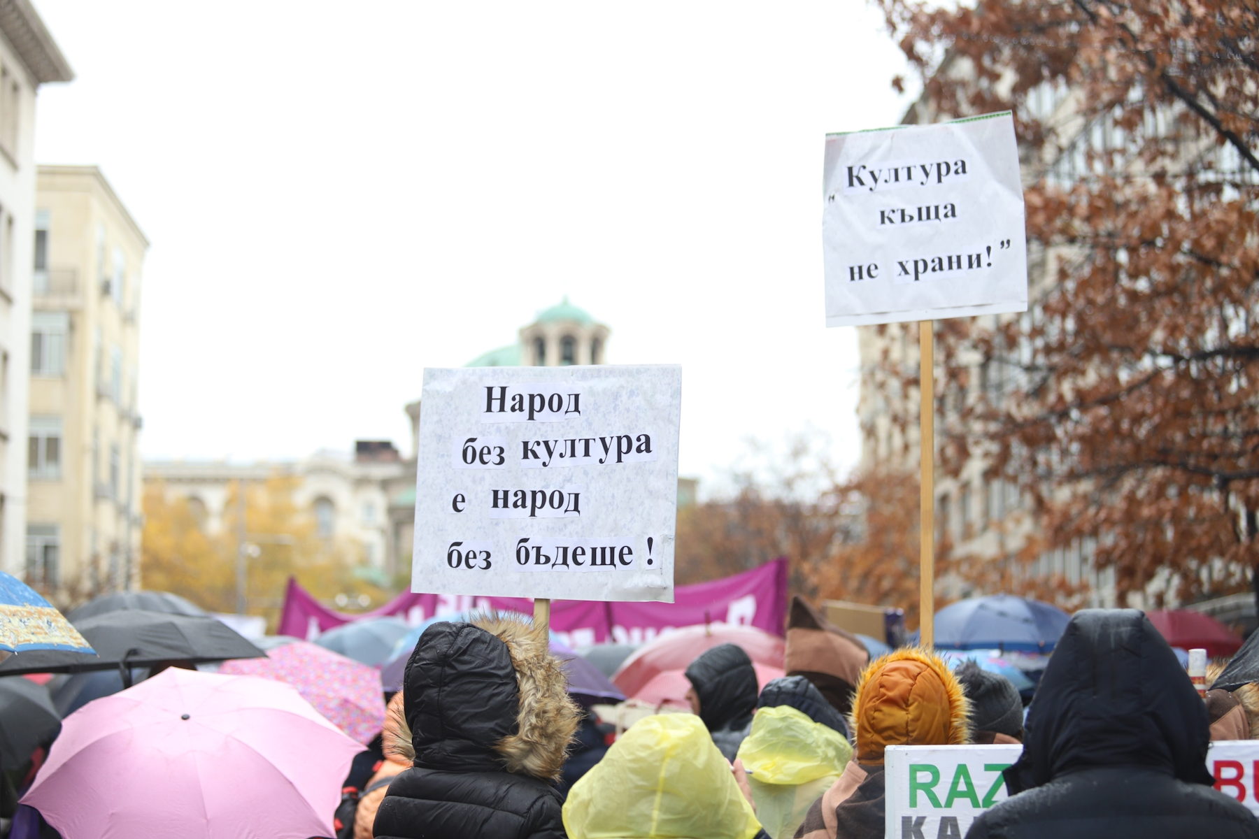 Културни дейци от цялата страна излязоха на пореден протест срещу ниския бюджет за култура и с искане за справедливо заплащане в сектора. Пред Министерството на културата те обявиха, че „Народ без култура е народ без бъдеще“.
