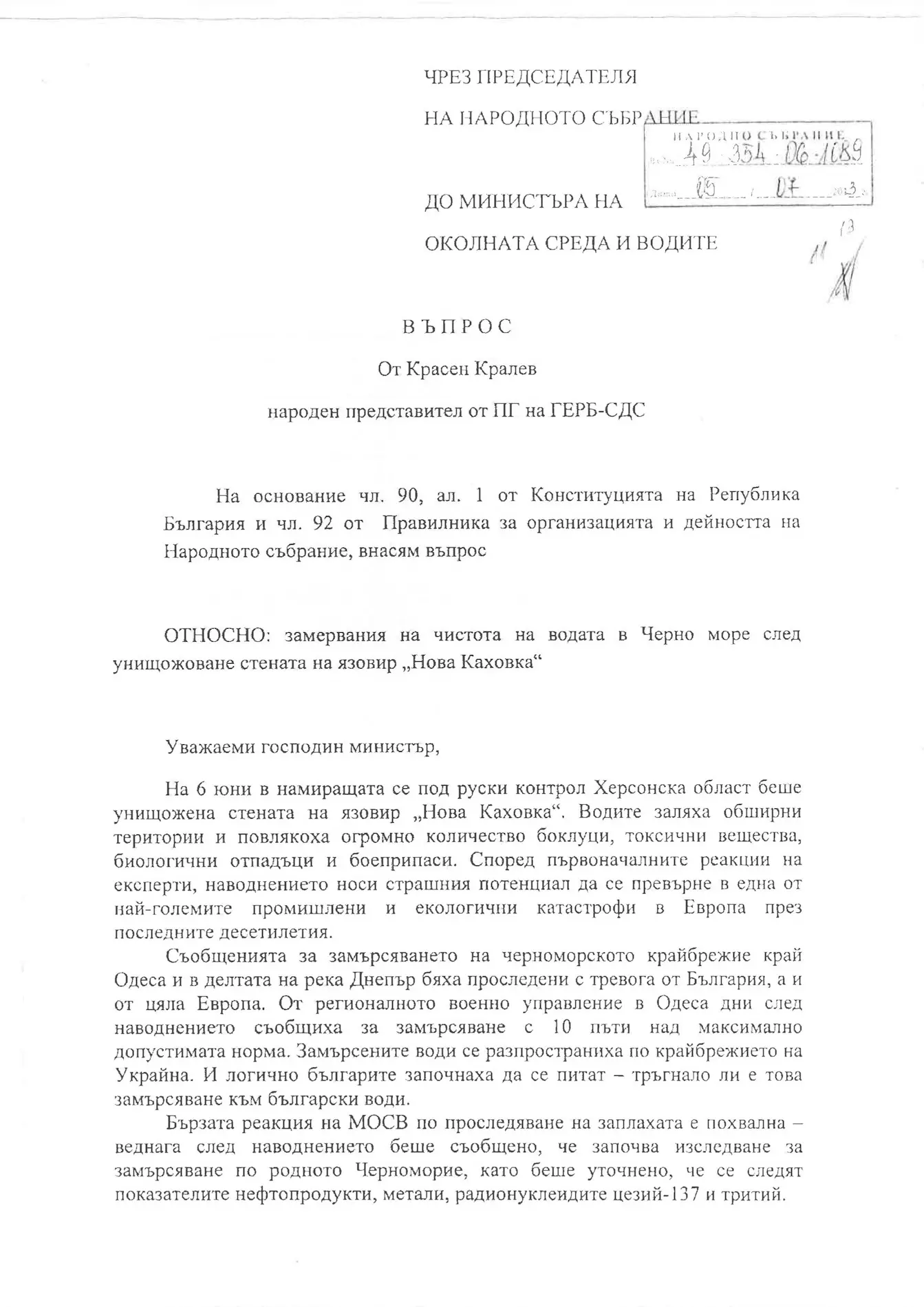 Това се съобщава в отговор на министъра на околната среда и водите Юлиян Попов в отговор на въпрос на депутата от ГЕРБ Красен Кралев.