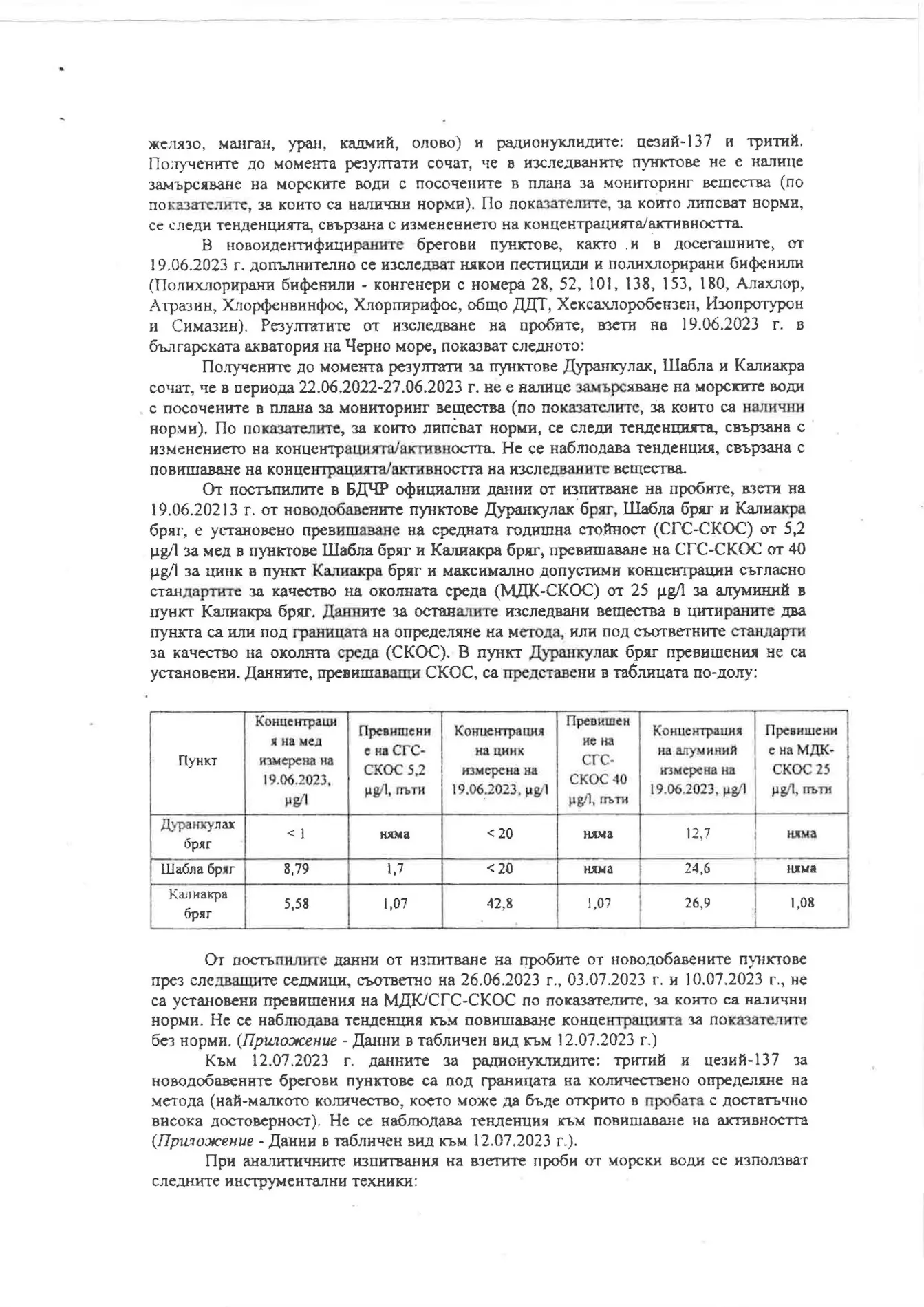 От МОСВ уверяват, че не са констатирани опасни вещества в морската вода и дават подробна разбивка за какво точно се тества, на кои точки и какви стойности връщат тестовете.