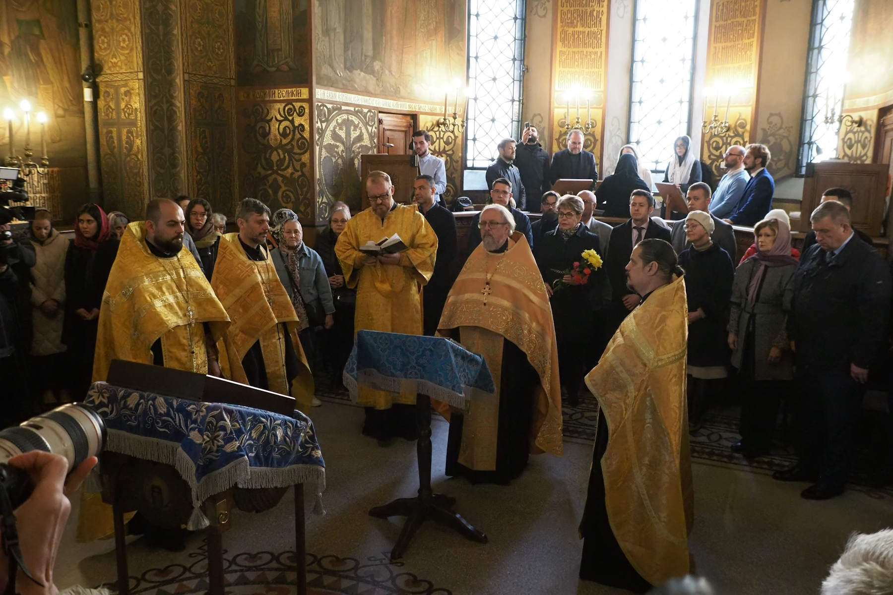 Днес новият предстоятел на църквата, назначен от руския патриарх, протойерей Владимир Тишчук отслужи първия си молебен, заедно с тримата български свещеници, назначени от патриарх Неофит да служат в храма.