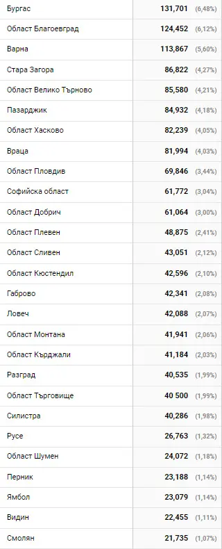 Уникалните потребители на Tribune.bg в София са 304 хил. В столицата е и най-голямото читателско ядро на медията. Отлично покритие с по над 100 хил. читатели имаме още в областите Бургас, Благоевград и Варна.