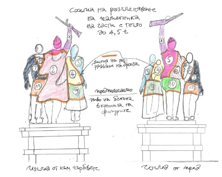 разчленяване ще позволи по- лесно транспортиране и няма да попречи по- късно за сглобяването на фигурите на новото място определено за тяхното експониране“, пише в документа. После по точки се описва демонтажът като свалените елементи се извозват до р-н „Панчарево“, с. Лозен, местност Джуджин азмак.