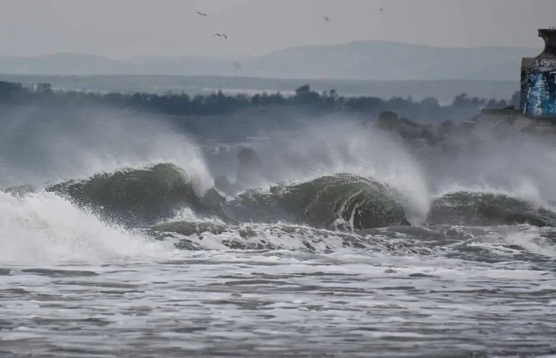 След ураганния вятър снощи ивицата на Северния плаж в Бургас е опустошена. Вълните са достигнали до паркинга край бариерата, а заведенията на плажа са наводнени.