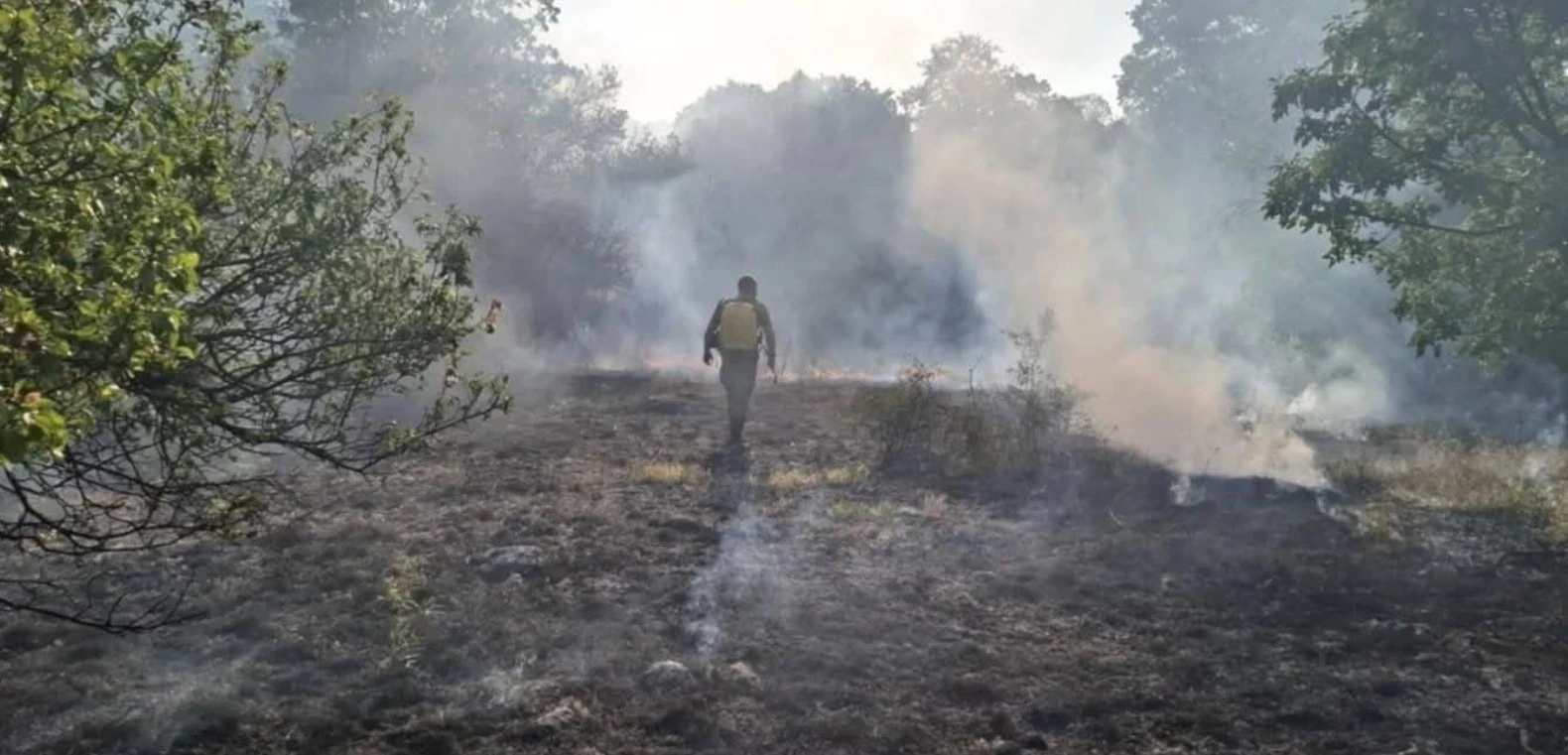 Пожарникари и доброволци се опитват да спрат пламъците, които са на метри от борова гора. Кметът на село Опицвет отправи апел за помощ от военните с тежка техника и хеликоптер, за да започне гасене и по въздух. Огънят е в труднодостъпен район, съобщава БНТ.