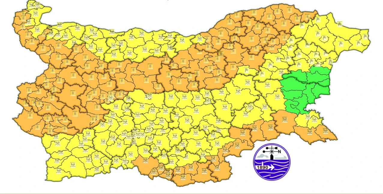 В 20 области предупреждението е от втора степен – оранжев код, а в 8 области е от първа степен – жълт код.