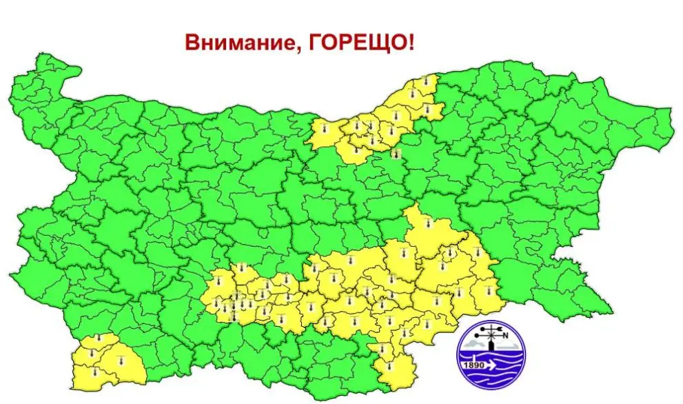 Отново жълт код за горещини в част от страната. Остава опасността от пожари