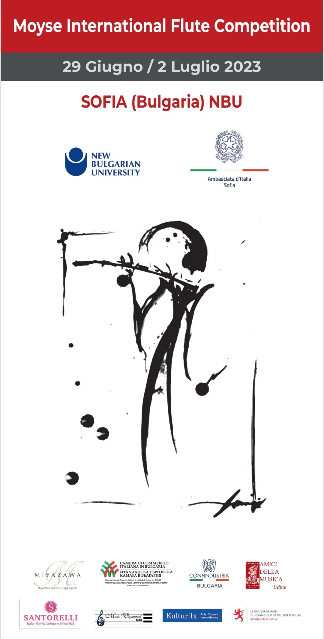 Посолството на Италия в България и Нов български университет (НБУ), в сътрудничество с Конфиндустрия България, организират първото издание на Международния флейтов конкурс „Моиз“, който ще се проведе от 29 юни до 2 юли 2023 г. в София. Този конкурс, създаден от проф. д-р по флейта в НБУ Луиза Село и посветен на представителните фигури на световното флейтово изкуство – Марсел и Луи Моиз, има за цел да разшири и доразвие сътрудничеството и приятелството между италианските и българските институции, като популяризира на международно ниво интерпретатори от ново поколение.