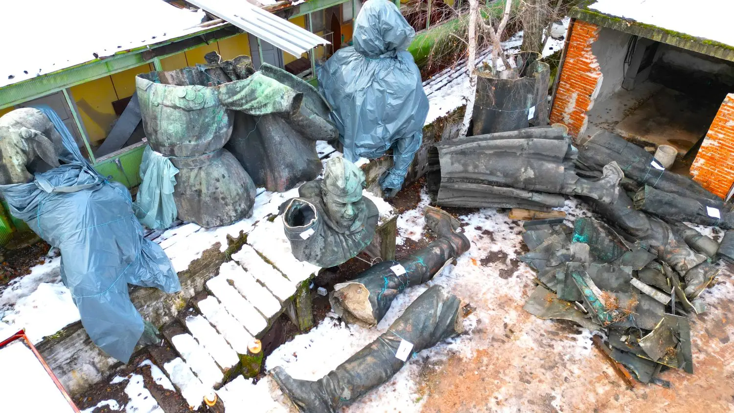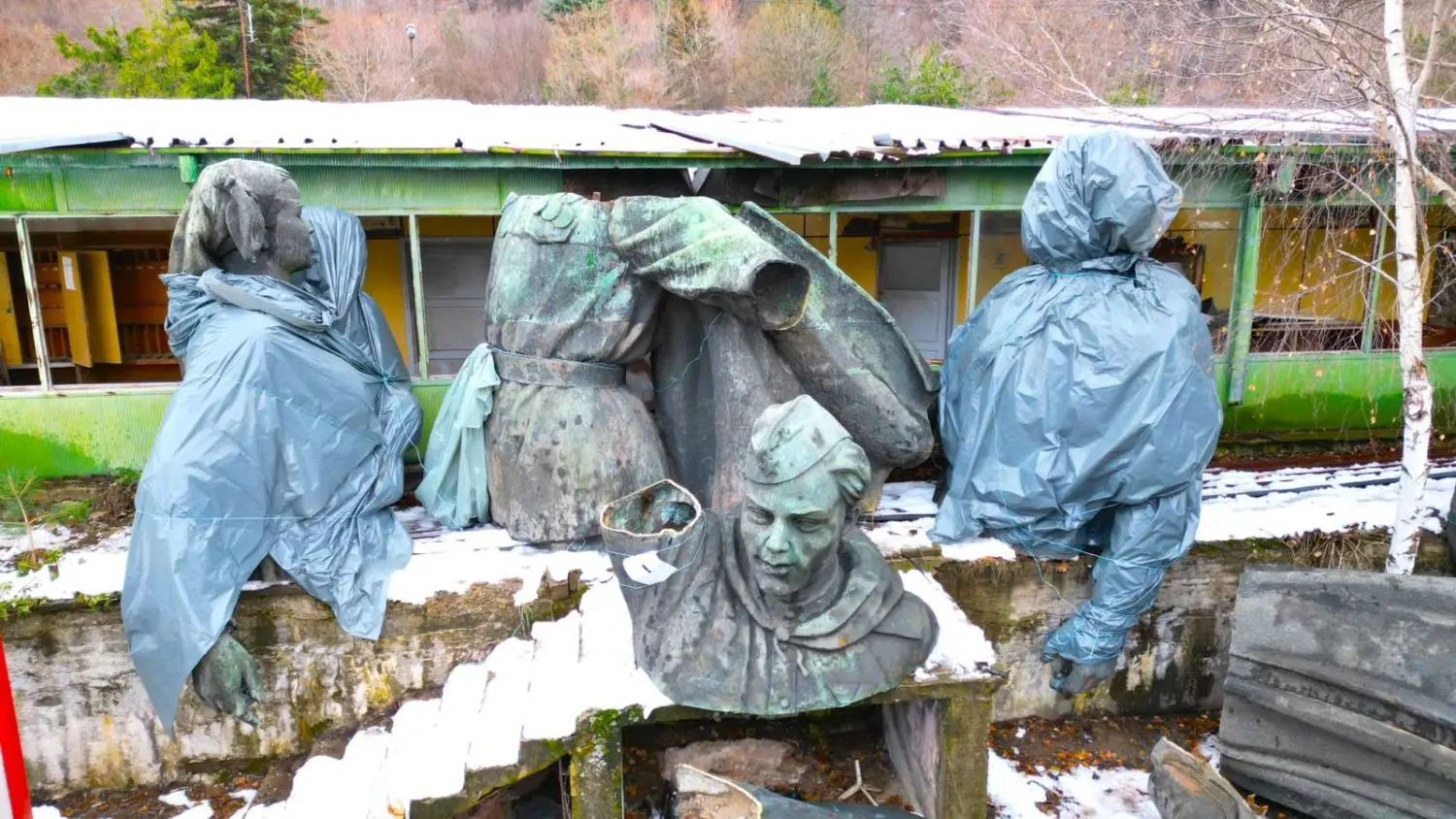 Нарязаните на парчета фигури от Паметника на съветската армия са буквално поставени в калта на поляна в софийското село Лозен.