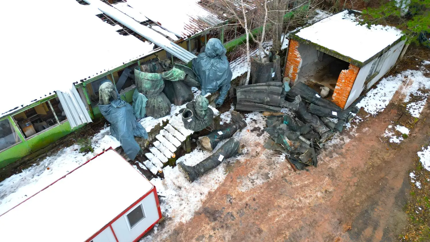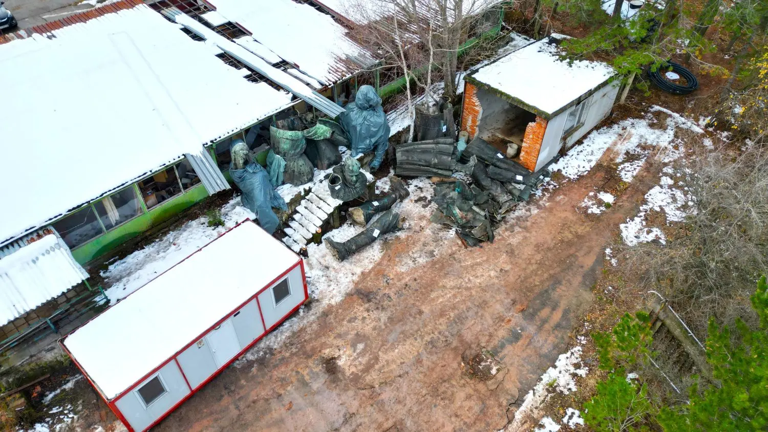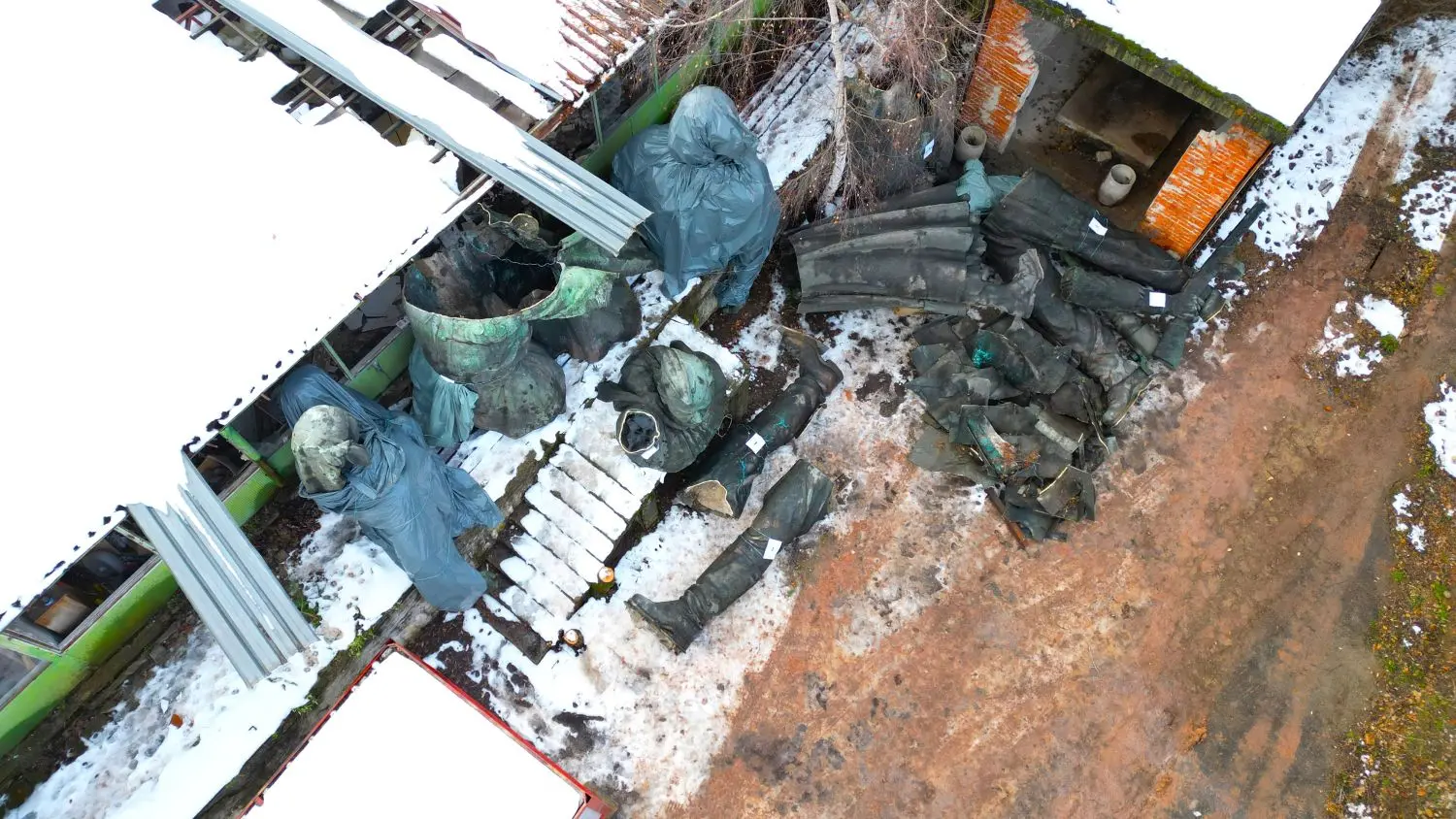 На снимките и видеоматериала на Агенция БГНЕС, заснет с дрон, ясно личи как бронзовите елементи на паметника все още не са прибрани в халетата, предвидени за целта.