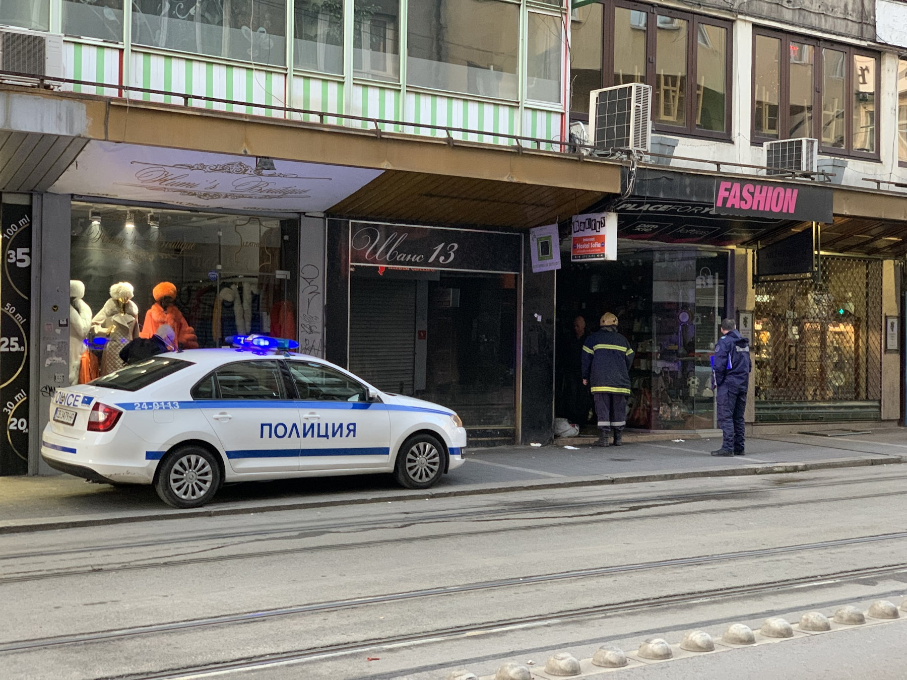 Огнеборците са разбили витрините на магазина, чието лице е към „Алабин“. За кратко са спрели и трамваите.