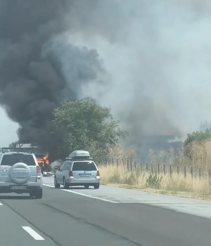 Днес около 13:20 ч. на автомагистрала „Тракия“ избухна пожар в лек автомобил, който се е движел в посока Бургас. По първоначална информация, в резултат на инцидента пламъците са се прехвърлили и в прилежаща нива край аутобана.