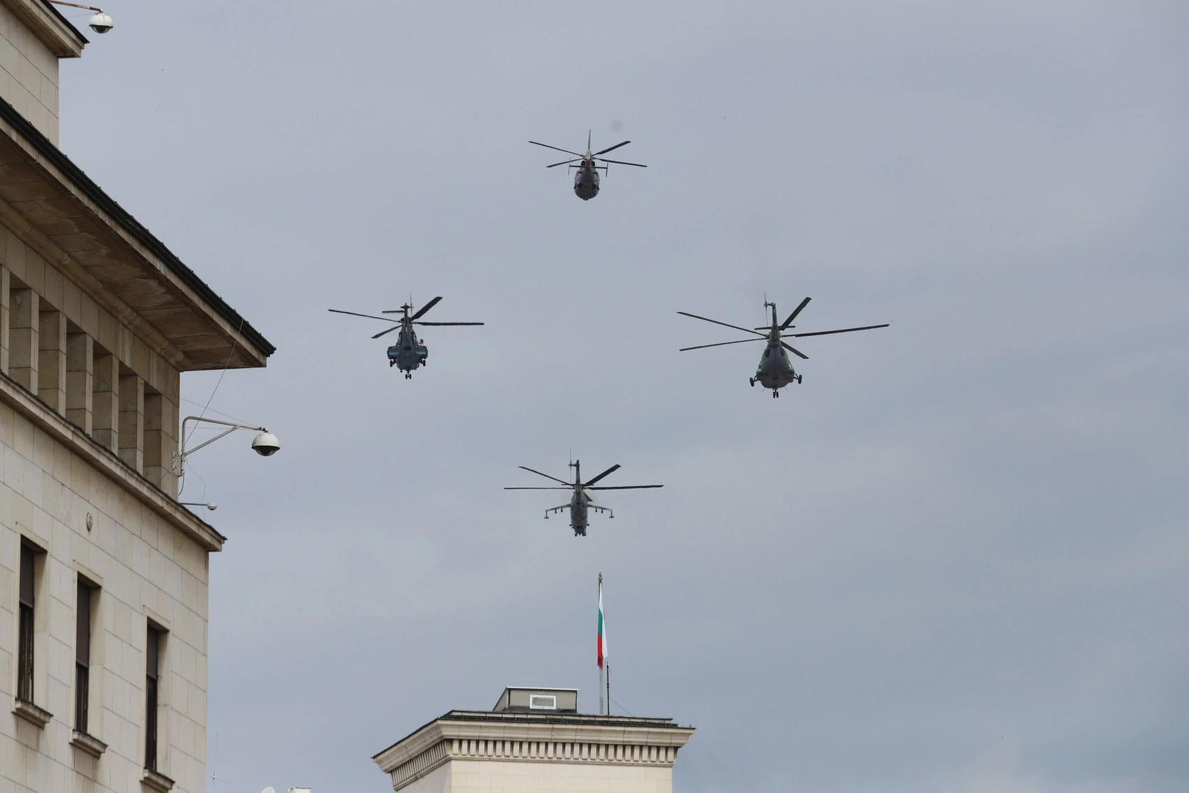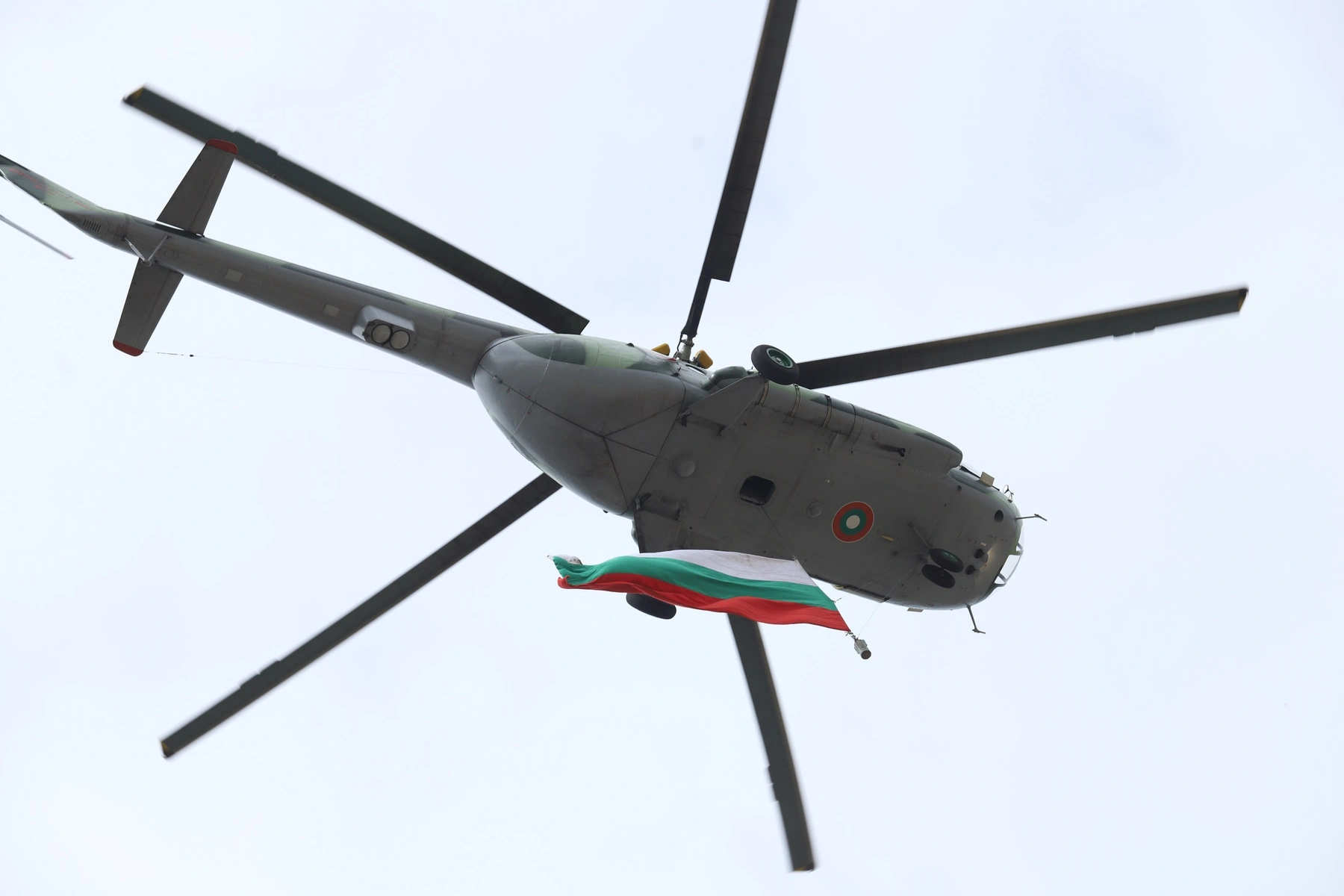 Парадът стартира с военен хеликоптер Ми-17 с националния трибагреник. След преминаването на представителните блокове на въоръжените сили в тържествен марш на площад "Княз Александър I" следва въздушният компонент на парада.