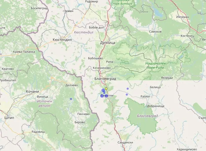 Серия трусове в района на Симитли само за няколко часа. Данните на Геофизичния институт към БАН сочат четири земетресения Първото от тях е било в 05:08 часа със сила 2,8 по Рихтер. Епицентърът му е бил в землището на село Железница.