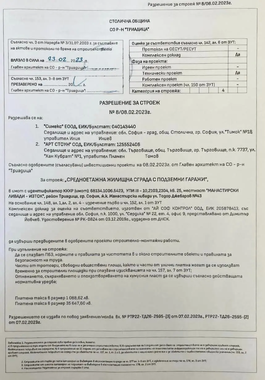 „За този обект е издадено разрешение за строеж на средноетажна жилищна сграда от главния архитект на район "Триадица" Владимир Владов, който е подчинен на районния кмет Димитър Божилов. Очаквам от район "Триадица" информация за одобрените от тях строителни книжа и мерките за безопасност“, допълва още Георгиев.