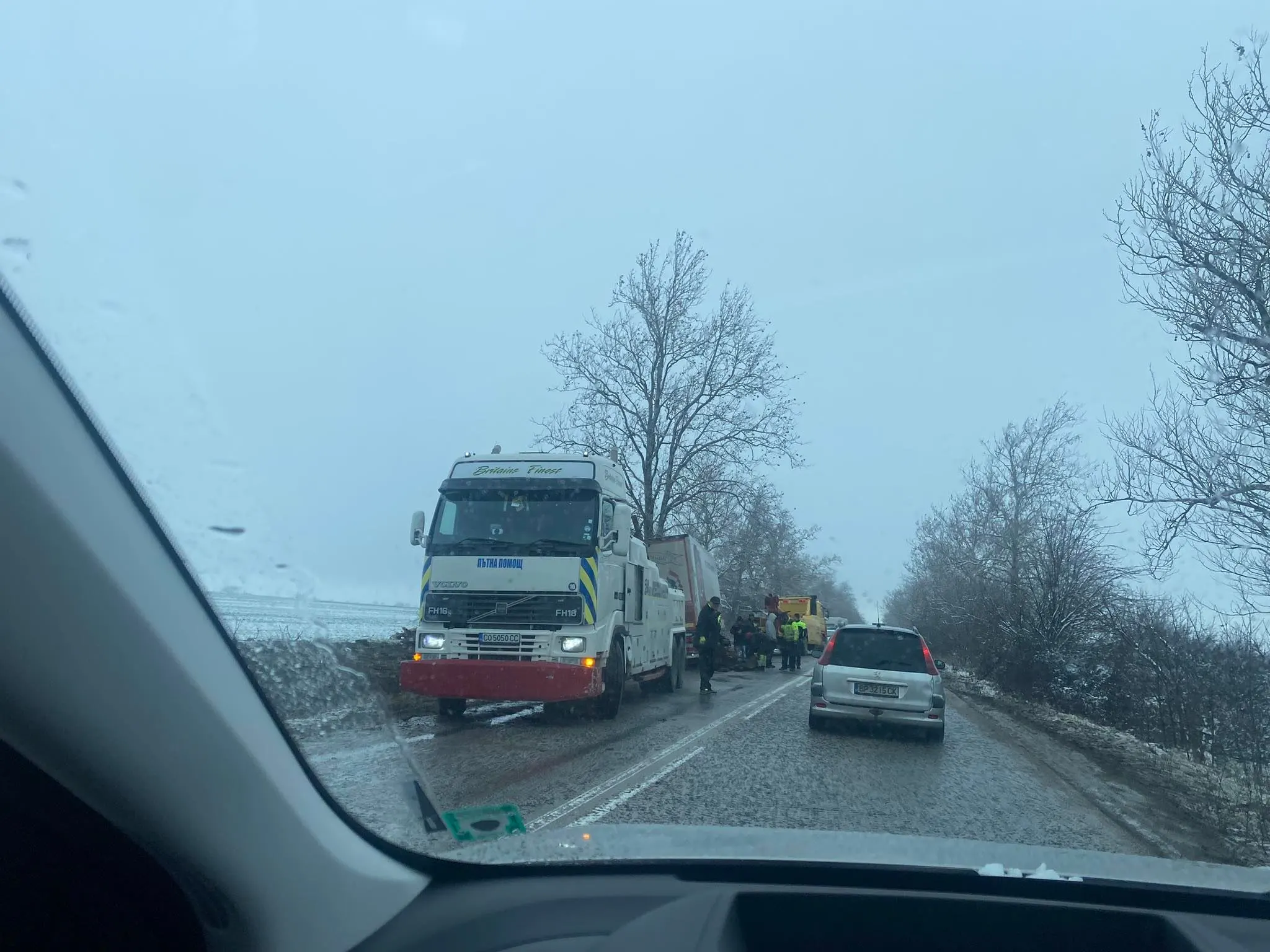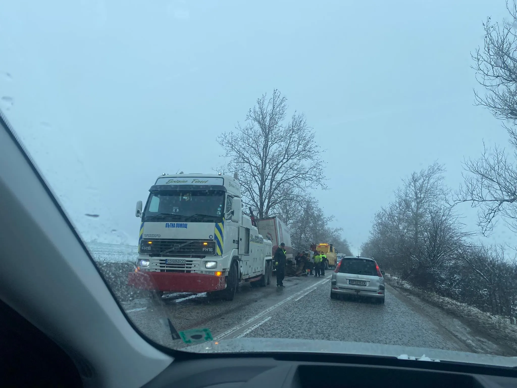 Тежка катастрофа затвори за часове международния път Враца-Оряхово. В ранните часове на деня ТИР над 12 тона се е преобърнал в канавката, като ремаркето му блокира едната пътна лента и вече шести час няколко екипа с тежки машини не могат да разчистят шосето.