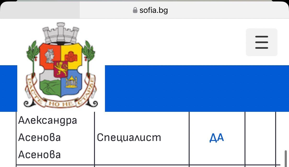 Асенова, която е член на Демократична България, фигурира на сайта на Столична община и сама се представя като „административен сътрудник в кабинета на кмета на София – Васил Терзиев“.