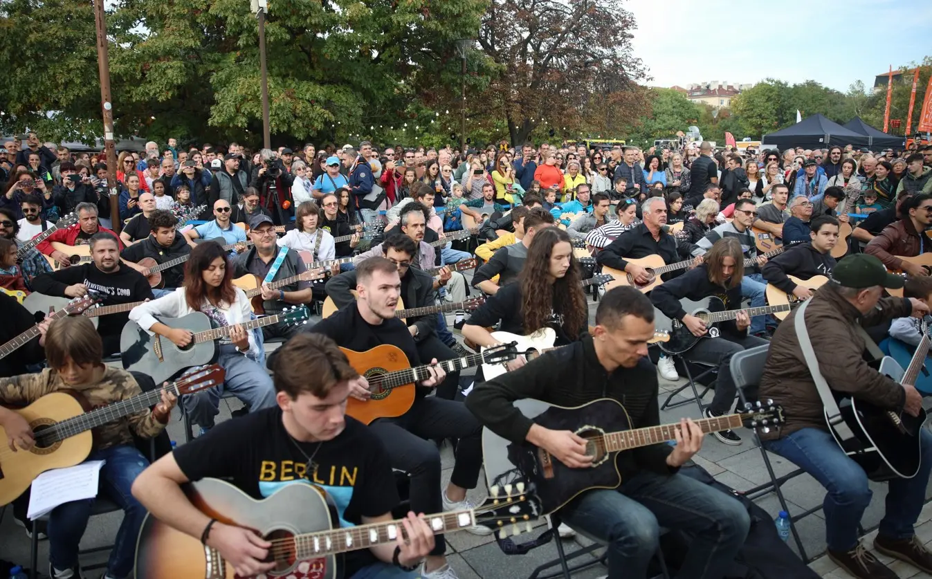Стотици китаристи свириха песните на Кирил Маричков пред НДК