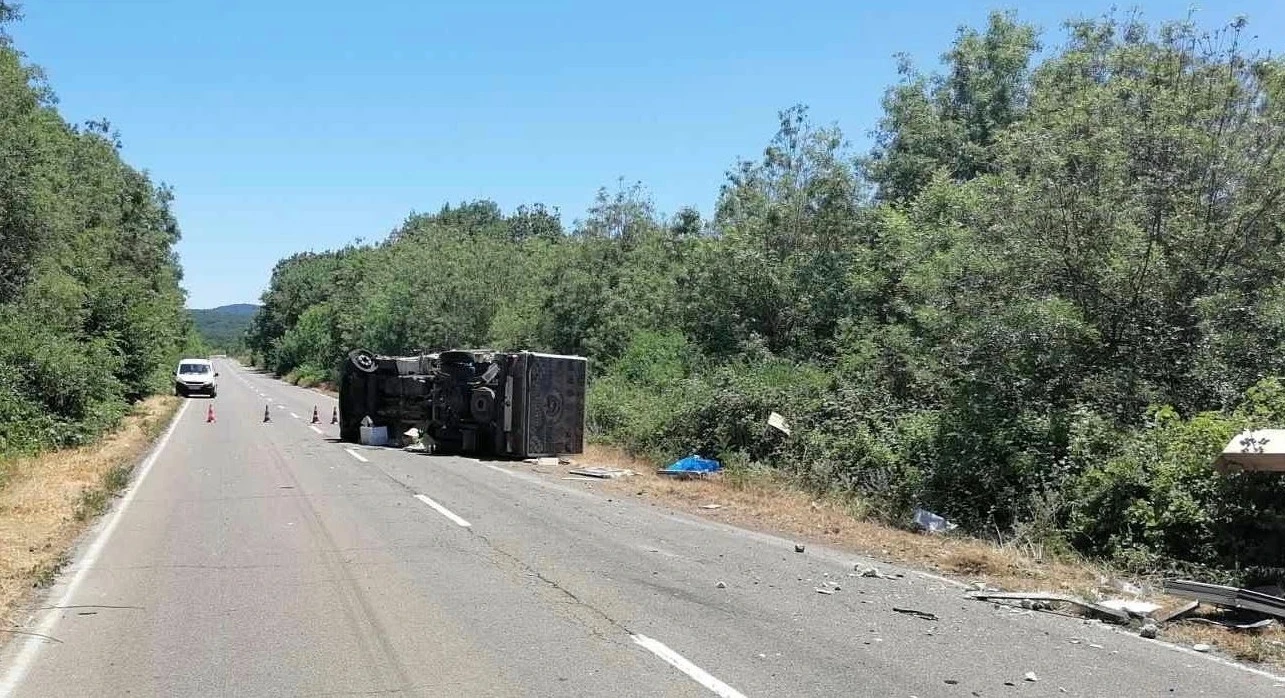 Лек автомобил с пловдивска регистрация, в който пътували мъж и двете му деца в посока Бургас, по неустановени към момента причини навлязъл в насрещното платно и се е ударил в камион за превоз на рибни продукти, който се е движел в посока Приморско. Вследствие на удара товарният автомобил се е преобърнал.