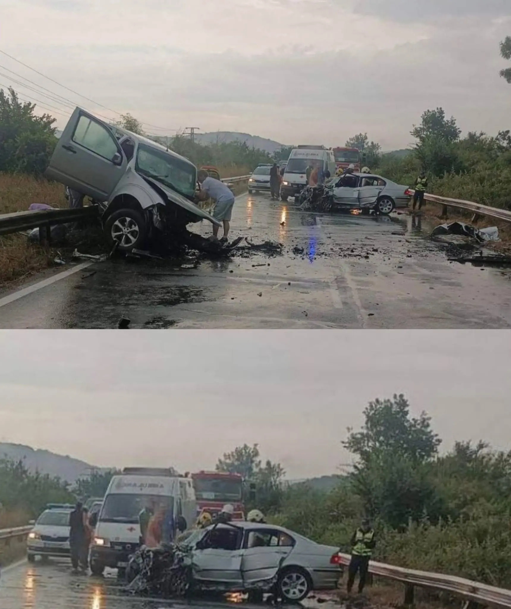 Младият шофьор е загинал на място. Тежко пострадали са двамата му спътници. Ранени са и шофьорът на другата кола, жена и дете, които са пътували с него.