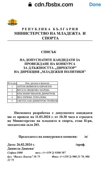 Протежето на бившия служебен министър на културата Велислав Минеков - Светослав Трайков – се опитва да намери ново поле за изява. Той е бил допуснат до конкурса за директор на Дирекция „Младежки политики“ в Министерството на спорта. Председател на комисията е проф. Даниела Дашева. Писменият етап от конкурса ще се проведе на 11 март 2024 г.