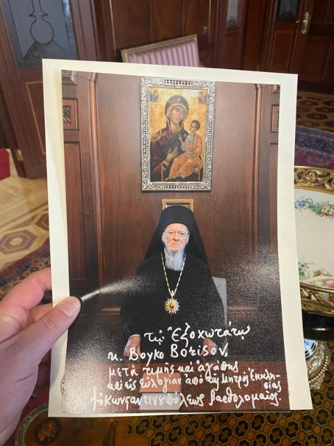 Вселенският патриарх Константинополски Вартоломей изпрати лична благословия на Бойко Борисов. Снимка на 83-годишния духовник, кокто е пръв между патриарсите, пише върху своя снимка: