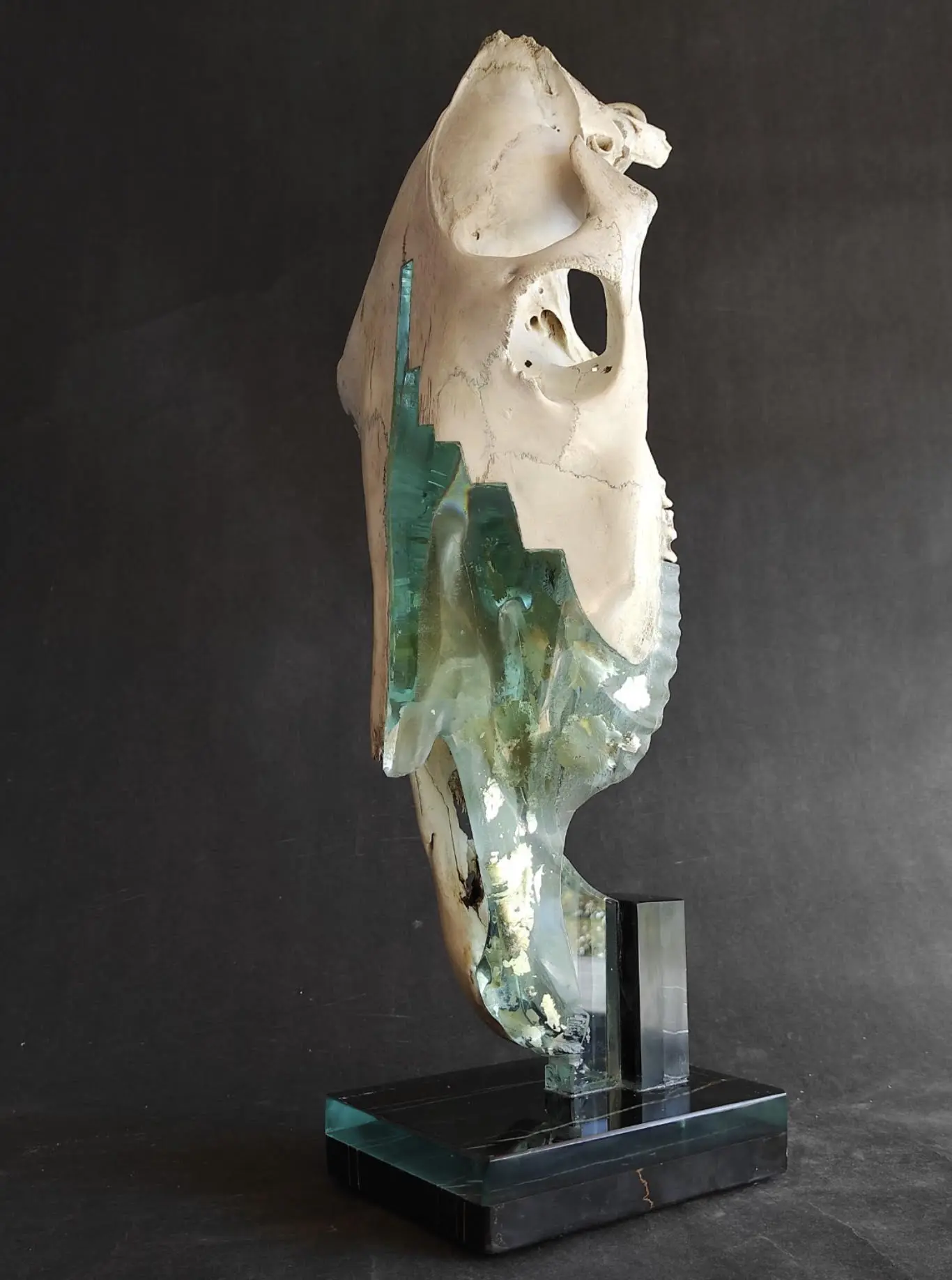 „Това е един изключителен материал, който не може да се сравни с никой друг, с неговата плътност, с полировката и крехкостта му. С него артистът трябва да подхожда много внимателно и деликатно, с търпението на будистки монах. Действително в България малко се работи със стъкло и в определени аспекти. За мен е много любопитно. Работил съм в камък, в керамика, бронз. Печелил съм и конкурси за малка пластика в бронз. Стъклото обаче дава едни много широки възможности, и като детайл, и като оптика, и като общи планове, и като цвят. Богат език е, но е безкрайно капризен. Изисква много търпение, специфични инструменти. Изключително енергоемка е работата с него. Хората, които класически се занимават със стъкло наблягат на оптиката, на това как светлината минава през стъклото, докато при мен акцентът е по-скоро обемът и аз искам светлината да се плъзга по обема, а не да минава през него и да го изяжда. Просто влизам в едни други измерения на стъклото, които ми пасват като възприятие и култура“, споделя още Хари Арабян.