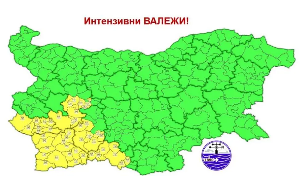 Предупреждението е в сила за София област, Пазарджик, Смолян, Благоевград и Кюстендил.