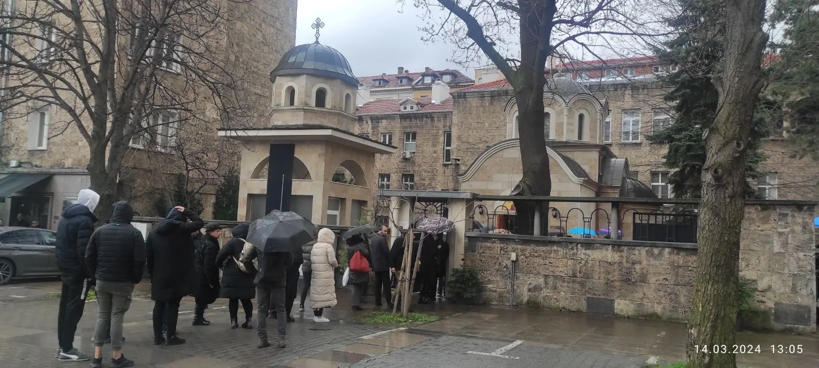 Тленните останки на патриарх Неофит бяха внесени в храм „Света Марина“ в София. Духовници от Софийската митрополия, чийто водач беше Негово Светейшество, вече се събраха в двора на храма. Пристигнаха и 12-е български митрополити.
