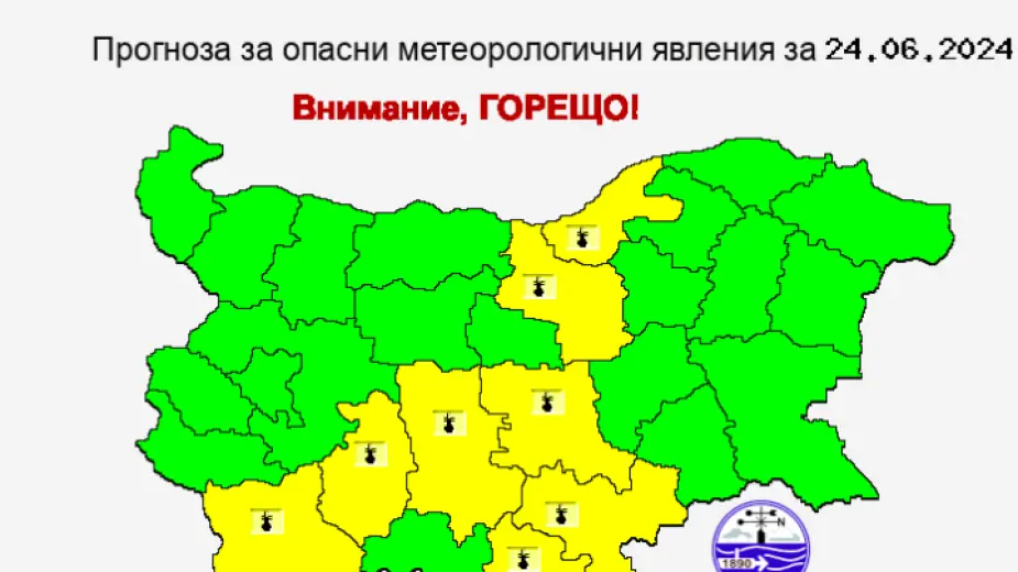 Жълт код за опасни горещини за 8 области в България
