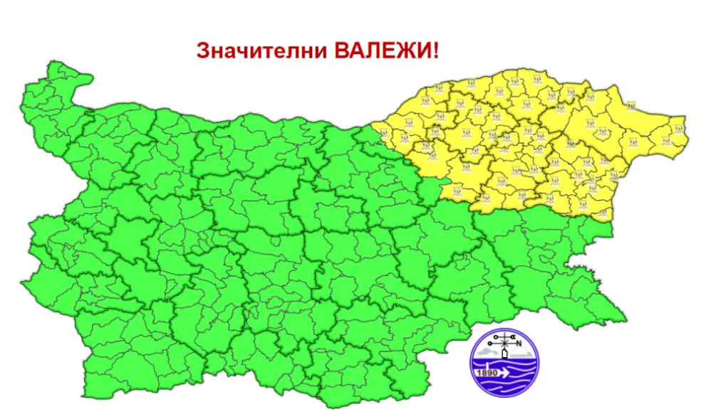 Жълт код за валежи и опасно време в седем области в България - (КАРТА)