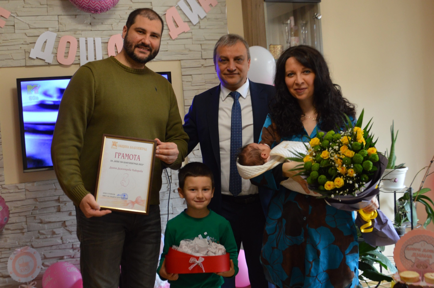 Бебетата получиха и специално изготвени грамоти, а техните майки букети от цветя като комплимент от кмета Стоянов.