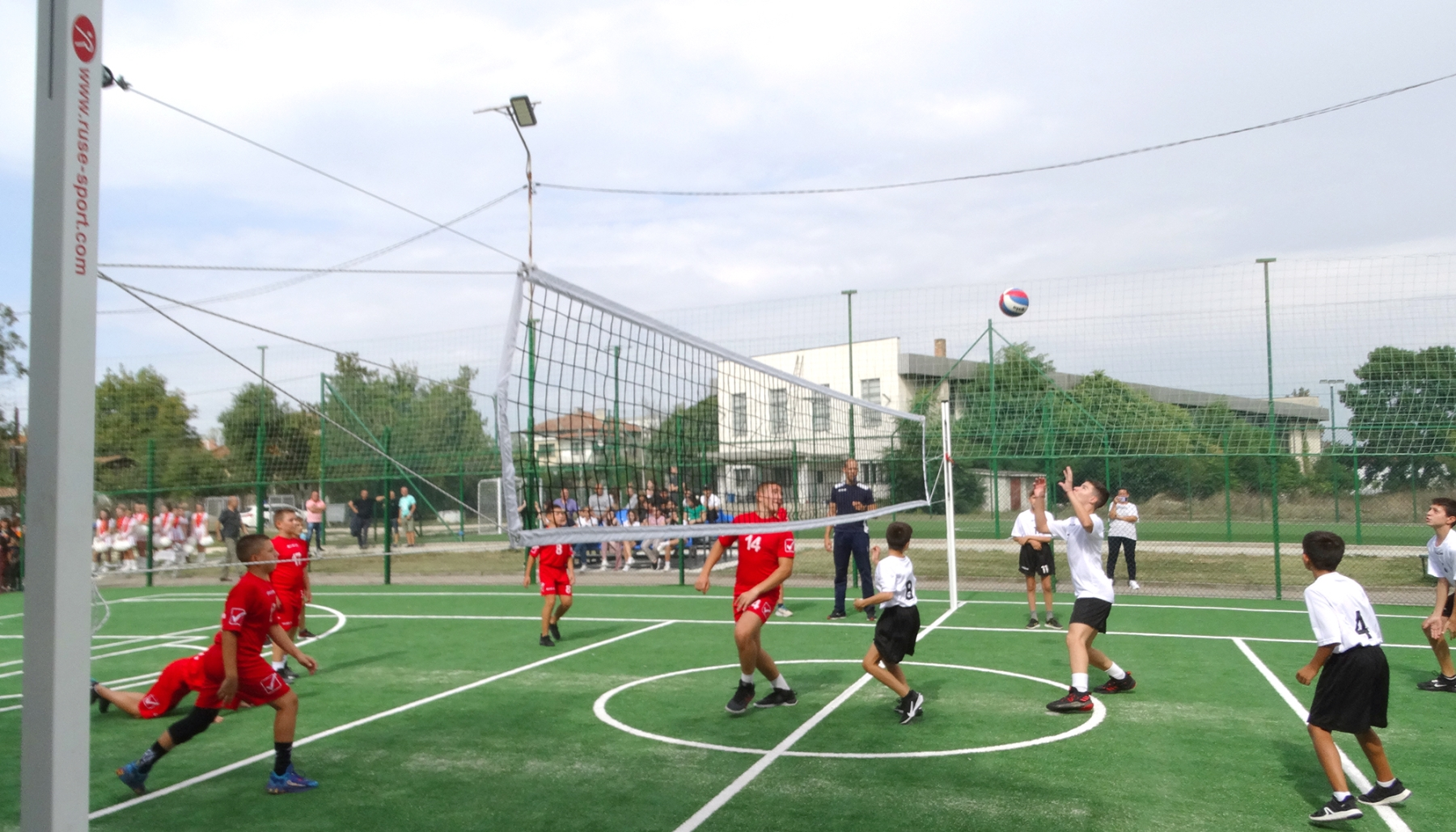 Миналата година върху съседен общински терен СУ „Алеко Константинов“ изгради изцяло ново мултифункционално спортно съоръжение със същите размери. В пространството между двете площадки вече са монтирани две 18-местни скамейки и съблекалня.