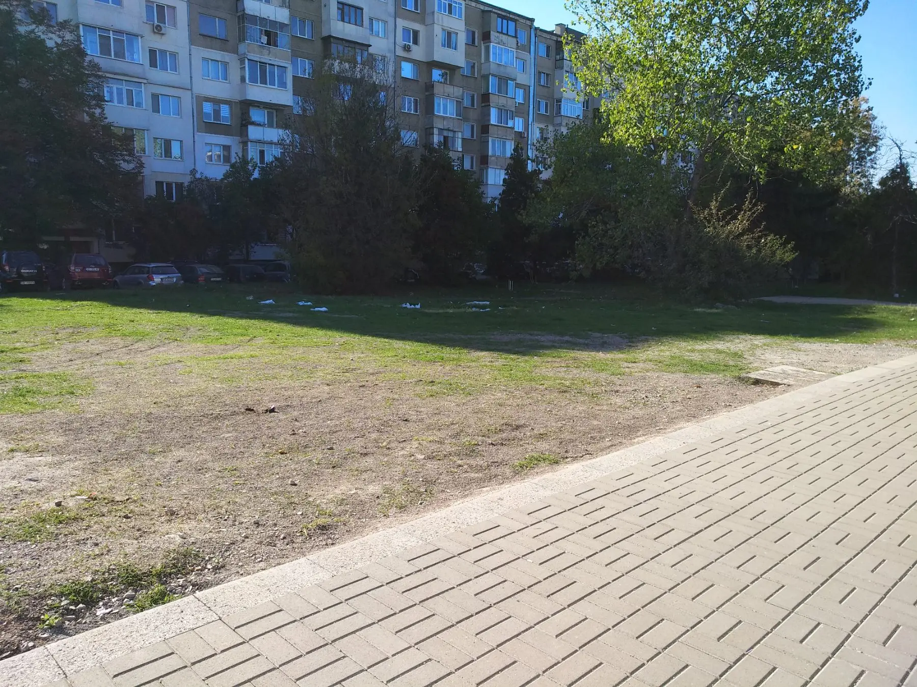 Унищожени тревни площи в Младост 1, след ремонт на тротоари. Потъпкана растителност, изровено, зарязан цимент и стелещи се навсякъде опаковки от строителни материали, е оставила строителната фирма, наета да оправи участъка около бул. Андрей Сахаров при Пазара „Младост“.