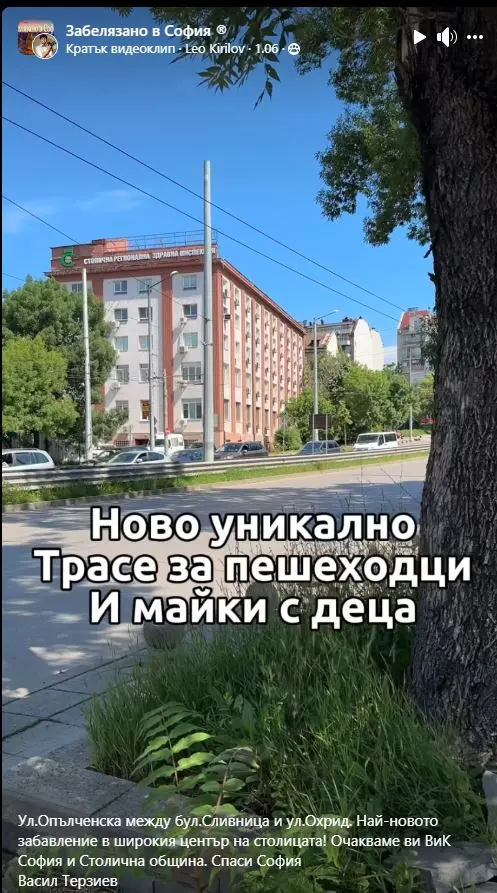 За ново „уникално“ трасе за пешеходци и майки с колички алармира потребител във фейсбук групата „Забелязано в София“.