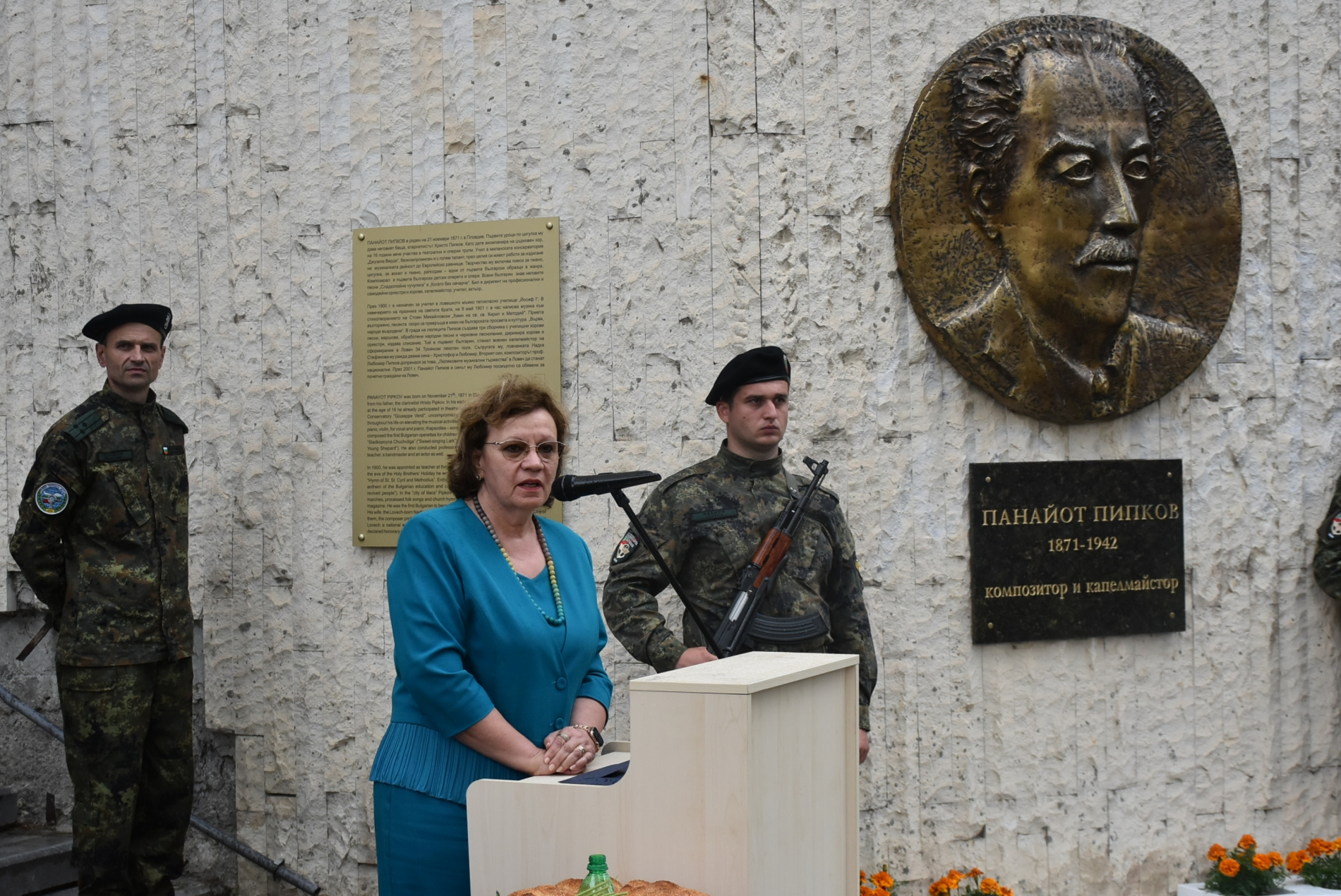 „Хубавите неща се случват, когато сме заедно – физически и юридически лица, местна и държавна власт, и когато се действа в една посока“. Това каза кметът на Община Ловеч Корнелия Маринова при откриването барелеф на композитора и капелмайстор Панайот Пипков (1871-1942). Това стана на 22 май 2023 г., като барелефът е поставен на стената на Регионалната библиотека „Проф. Беню Цонев“ в центъра на Ловеч. Кметът припомни, че Панайот Пипков през лятото на 1904 г. е преминал на военна служба като капелмайстор на военния духов оркестър на 34-ти пехотен Троянски полк. Това обяснява и днешния военен ритуал, с който бе открит паметният знак.