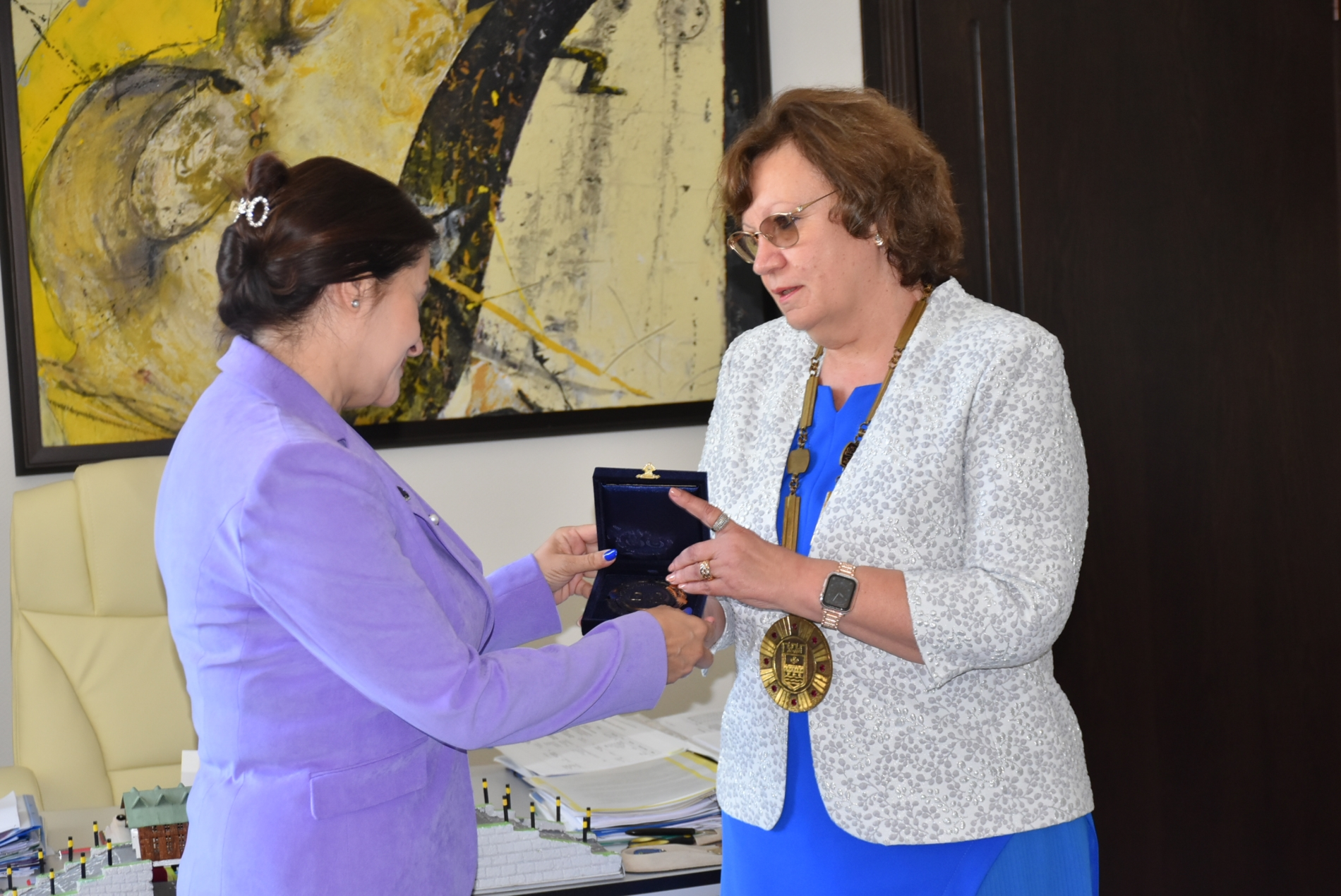 Преди официалното тържество в кабинета на кмета бе връчен плакет „Св. св. Кирил и Методий" и на Росица Кирова.