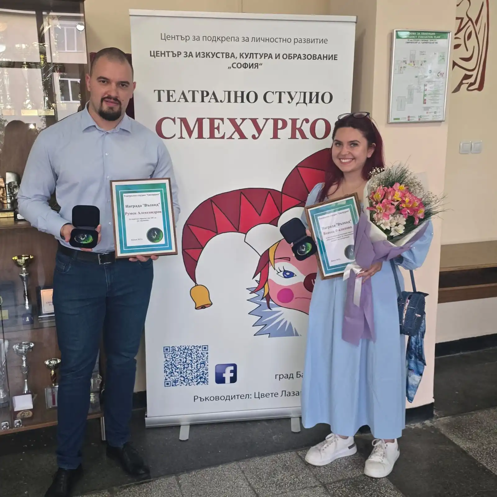 Румен Александров бе награден за щедрото си финансово дарение, което подпомогна дейността на школата, а Ванеса Филипова – за 10-годишния си неуморен труд, довел до стотици награди за младите таланти на „Смехурко“. Двамата са добре познати в Банкя с ангажираността, добротата и младостта си, както и със сплотеността, която излъчват, печелейки сърцата на своите съграждани.