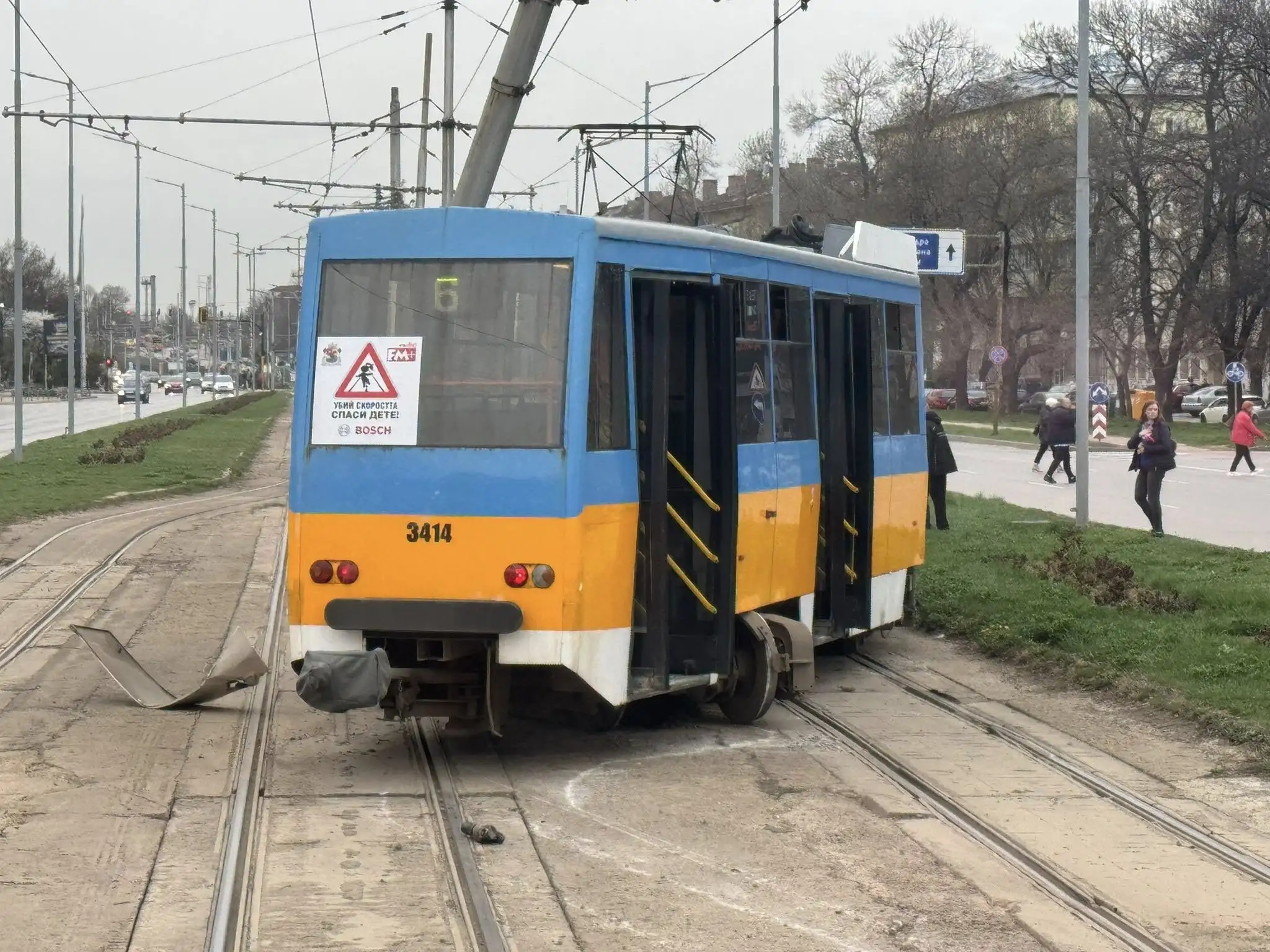 Трамвай излезе от релсите на бул. Мария Луиза срещу кино Освобождение. По чудо не се съобщава за пострадали хора.