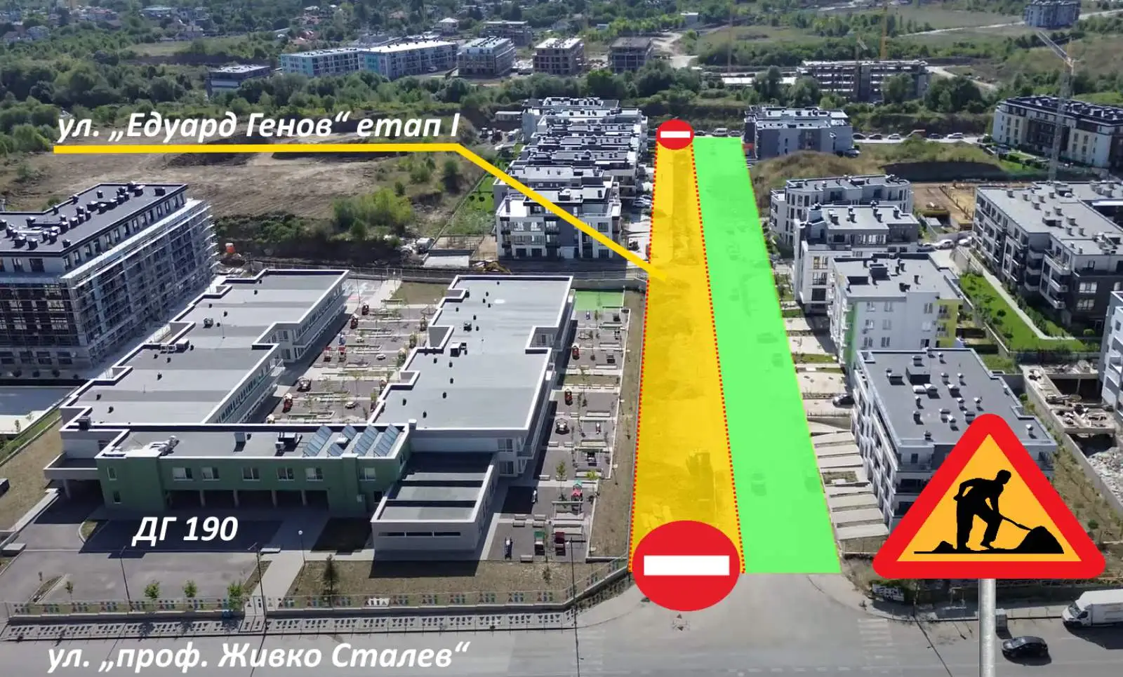 - По ул. „Едуард Генов“ се ограничава движението по северното платно за извършване на изкопни работи, изграждане на мрежи, полагане на пътна основа и асфалтиране. След което ще се ограничи движението в южното платно за извършване на необходимите строителни дейности.