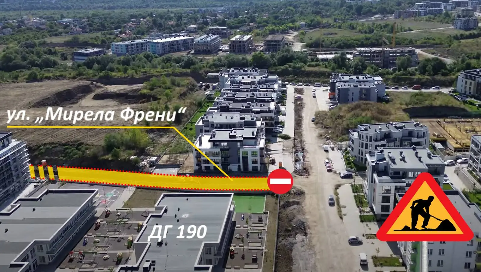 - По ул. „Мирела Френи“ се ограничава движението между ул. „Еньо Вълчев“ и ул. „Едуард Генов“ за изкопни работи за изграждане на инженерни мрежи и пътна конструкция. Временно ще наруши цялостното преминаване по ул. „Едуард Генов“. За обходен маршрут ще се използват ул. „Георги Русев“ и ул. „Никола Станчев“.