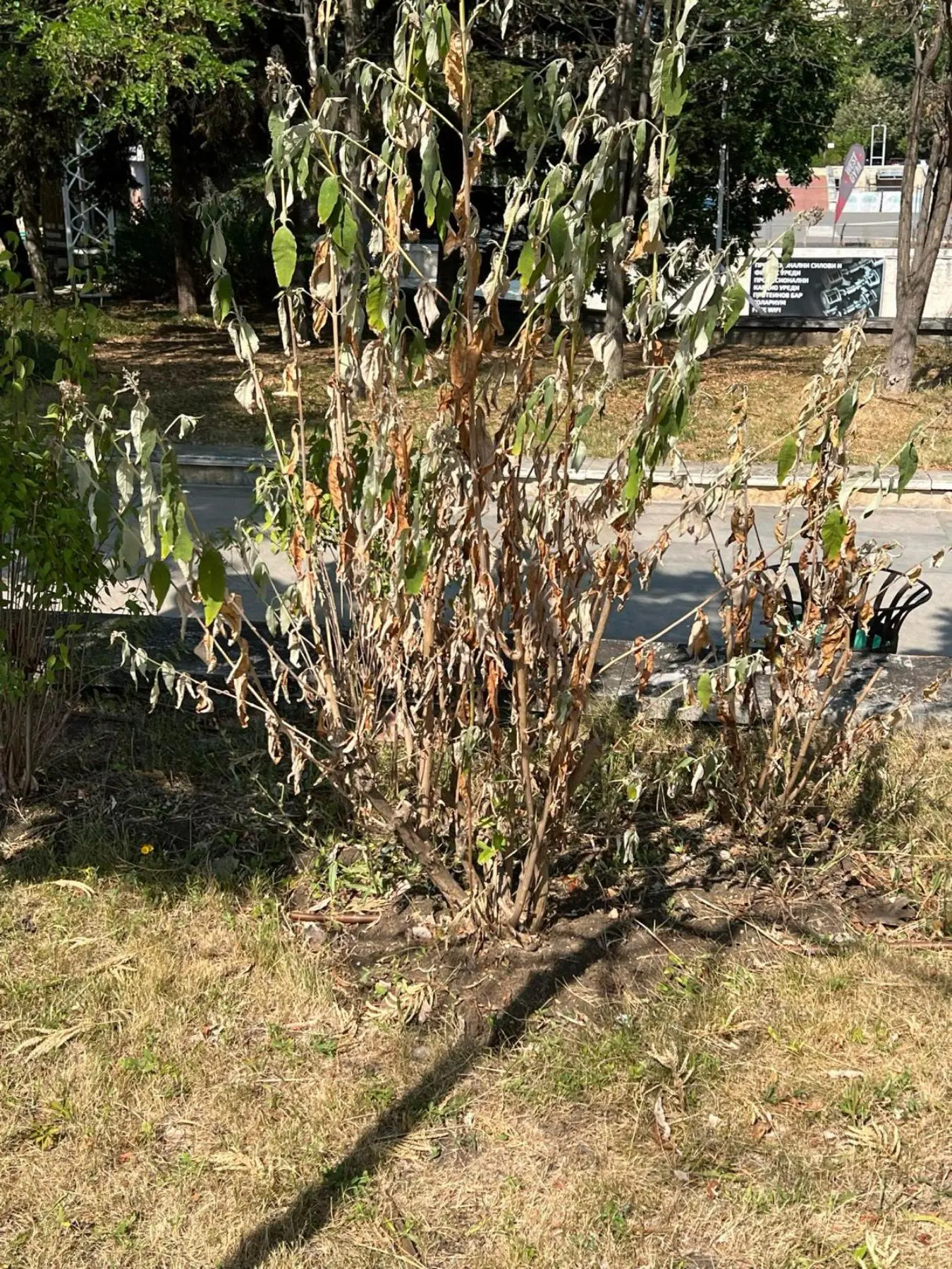 Според сигнала, растенията не са поливани грамотно по време на жегите.
