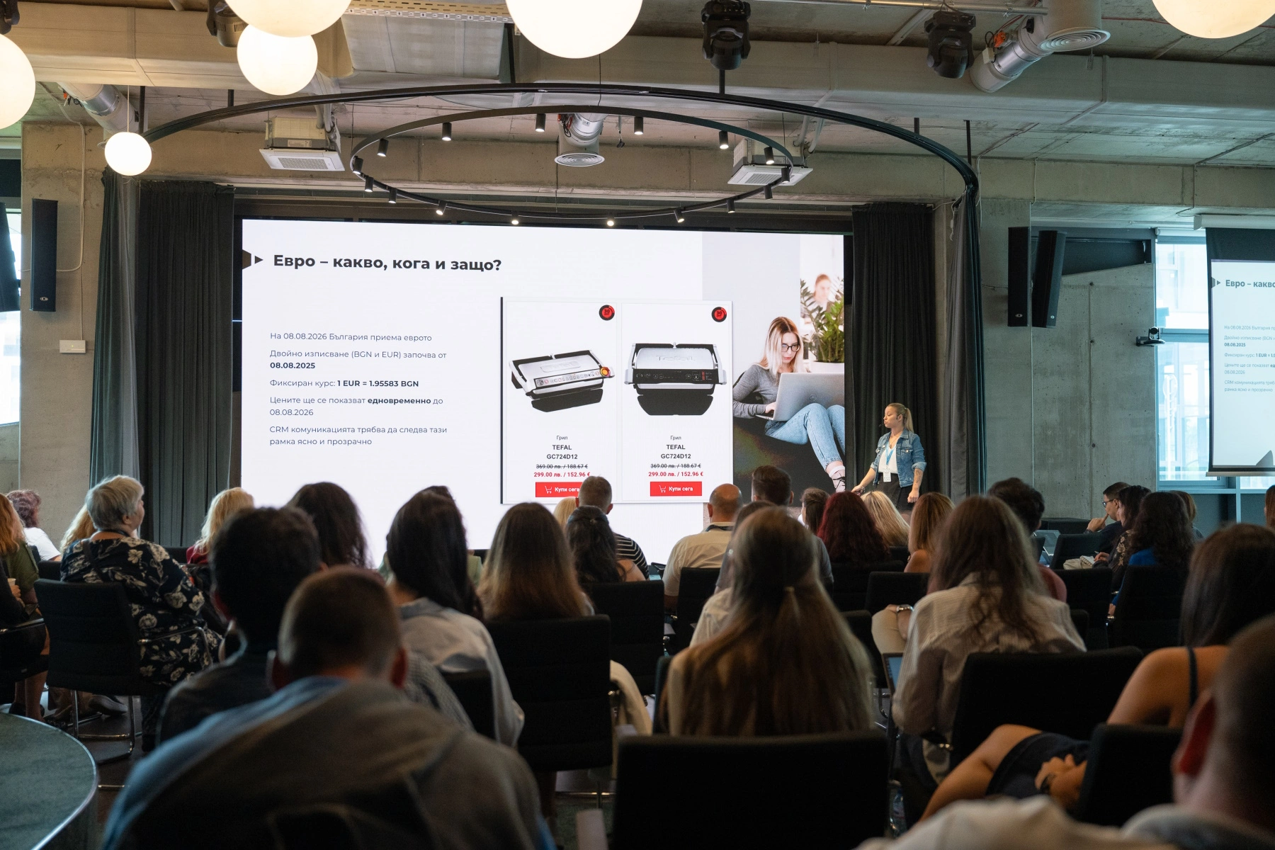 Технически, това означава добавяне на нови тагове с евро стойности в XML фийдовете, адаптиране на имейл шаблоните с двойно изписване на цени, както и визуални пояснения, например: „Изчислено по курс 1 € = 1,95583 лв.“. Практиката показва, че лева все още е водеща психологическа валута за българския потребител, затова той следва да се визуализира първи в комуникацията. Панчева подчерта и нуждата от предварително тестване на логики и проверка дали CRM платформите четат правилно новите стойности.