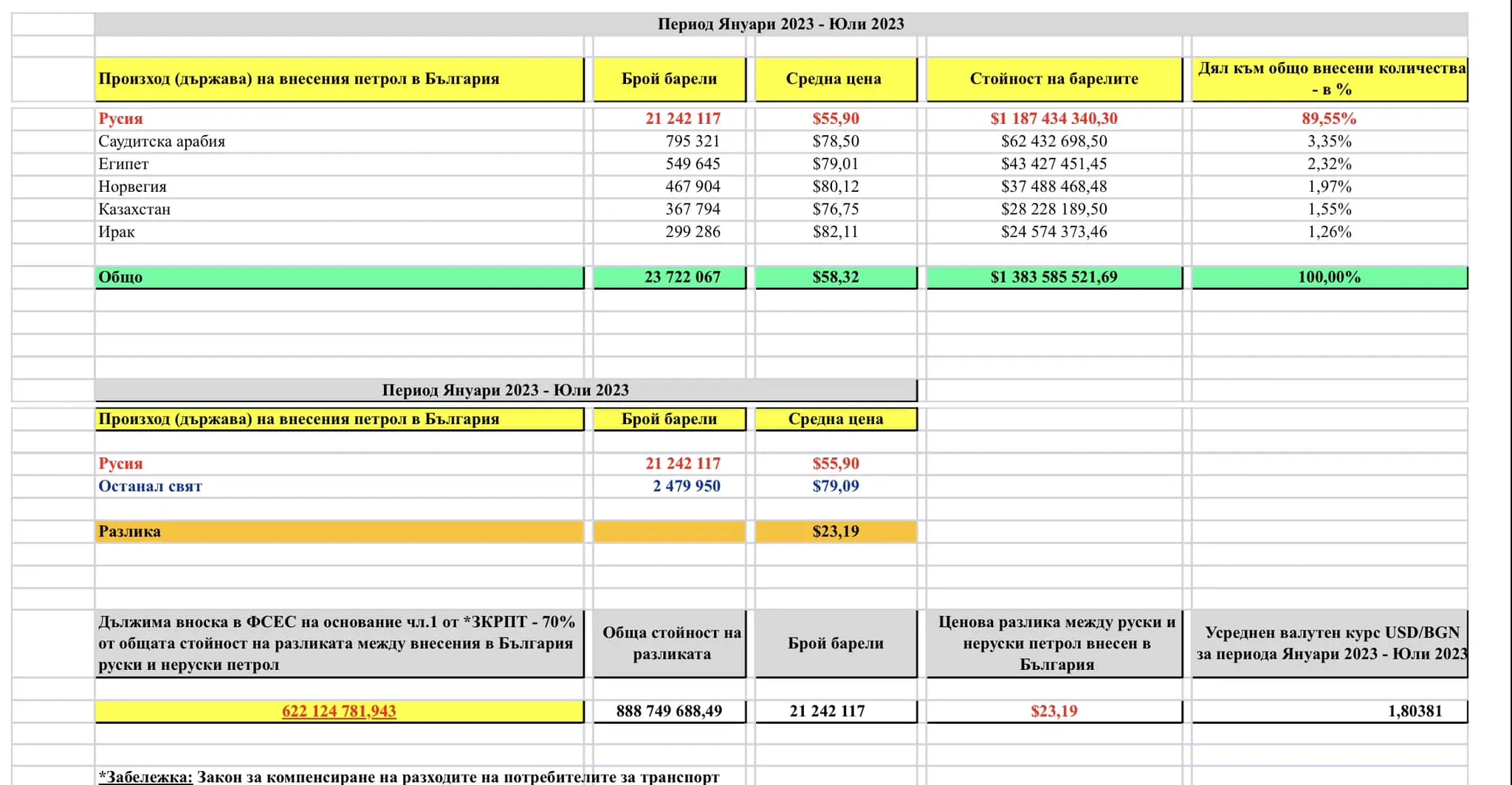 „Едно от определенията за държава гласи, че „Държавата е въплъщение на закона в обществото“. Ако законите не се спазват, има ли държава? Как е възможно Лукойл да е по-силен от държавата?! Искам всеки български шофьор да знае с колко е ощетен от неработещия закон! Затова направих съвсем точни калкулации каква сума е трябвало да внесе Лукойл във Фонда за сигурност на енергийната система (ФСЕС) и ако законът се изпълняваше, каква компенсация щеше да получи всеки на литър за целия период до момента (благодаря на Николай Павлов за калкулациите и оформлението - прилагам неговата таблица към поста)“, пише Добрев.