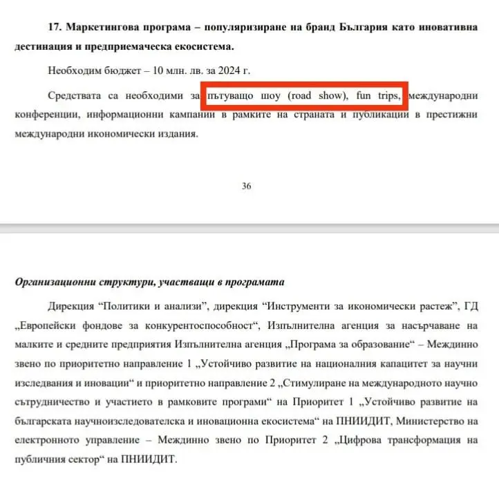 С пътуващо шоу (road show) и fun trips (забавни пътувания) Министерството на иновациите и растежа планира да популяризира бранда „България“.